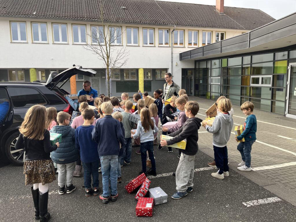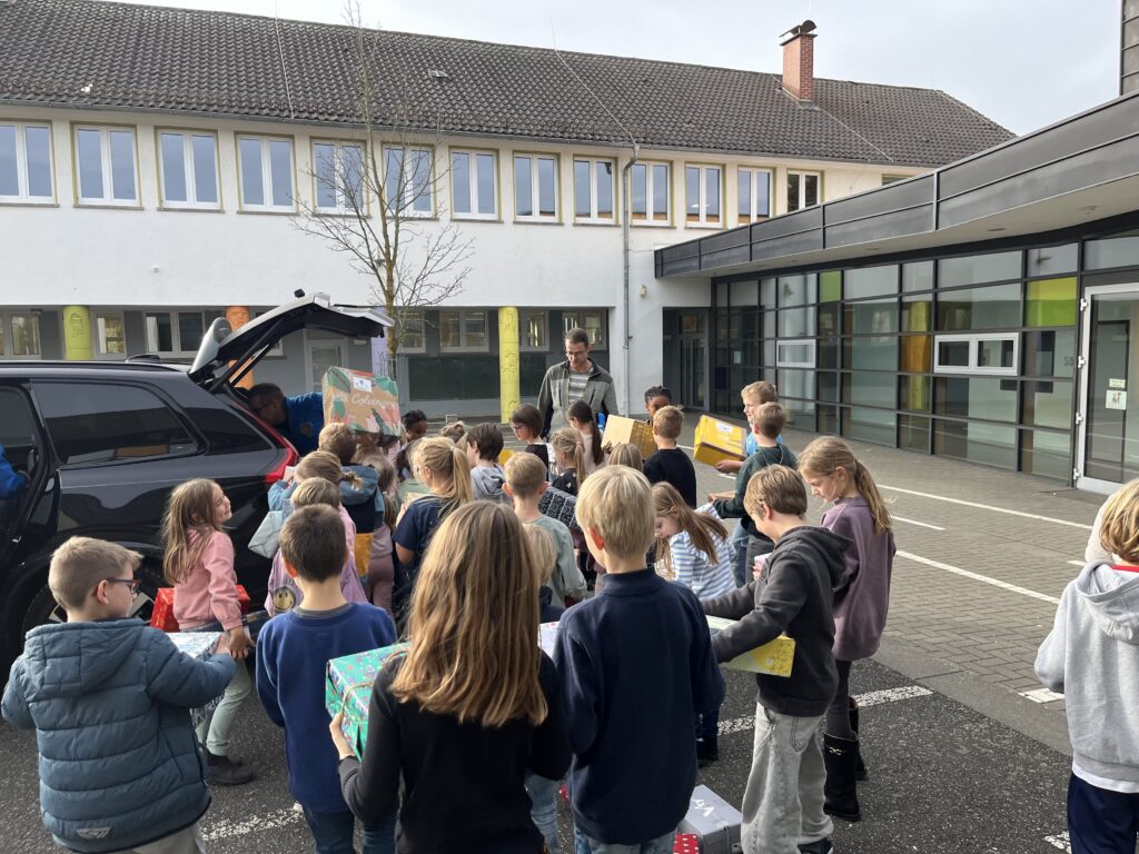 Unsere Schule hat in diesem Jahr am „Weihnachtspäckchenkonvoi“ teilgenommen – und das mit großem Erfolg! Insgesamt konnten wir 50 liebevoll gepackte Weihnachtspäckchen sammeln, die von den Familien unserer Schülerinnen und Schüler vorbereitet wurden, um Kinder in Not zu unterstützten . Diese große Beteiligung zeigt den starken Zusammenhalt innerhalb der Schulgemeinschaft und die Bereitschaft, anderen Kindern eine Freude zu bereiten. Abgeholt wurden die Päckchen von David Volkmann vom Round Table, der uns bei der Aktion tatkräftig unterstützt hat. Wir freuen uns über dieses gelungene erste Jahr der Teilnahme am Weihnachtspäckchenkonvoi – und sind selbstverständlich auch im nächsten Jahr wieder mit dabei.