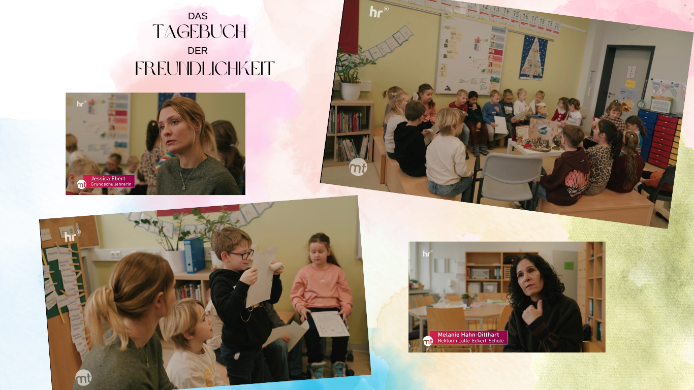 Im Rahmen des Projekts „Tagebuch der Freundlichkeit“ war der Hessische Rundfunk mit der Sendung maintower zu Gast an der Lotte-Eckert-Schule. Das TV-Team besuchte die Klasse 1a und sprach mit den Kindern über ihre Erfahrungen mit dem Projekt, das freundliche Gesten und gute Taten im Alltag in den Mittelpunkt stellt.