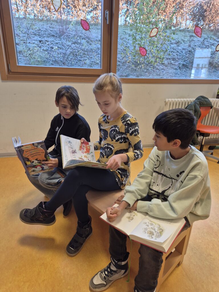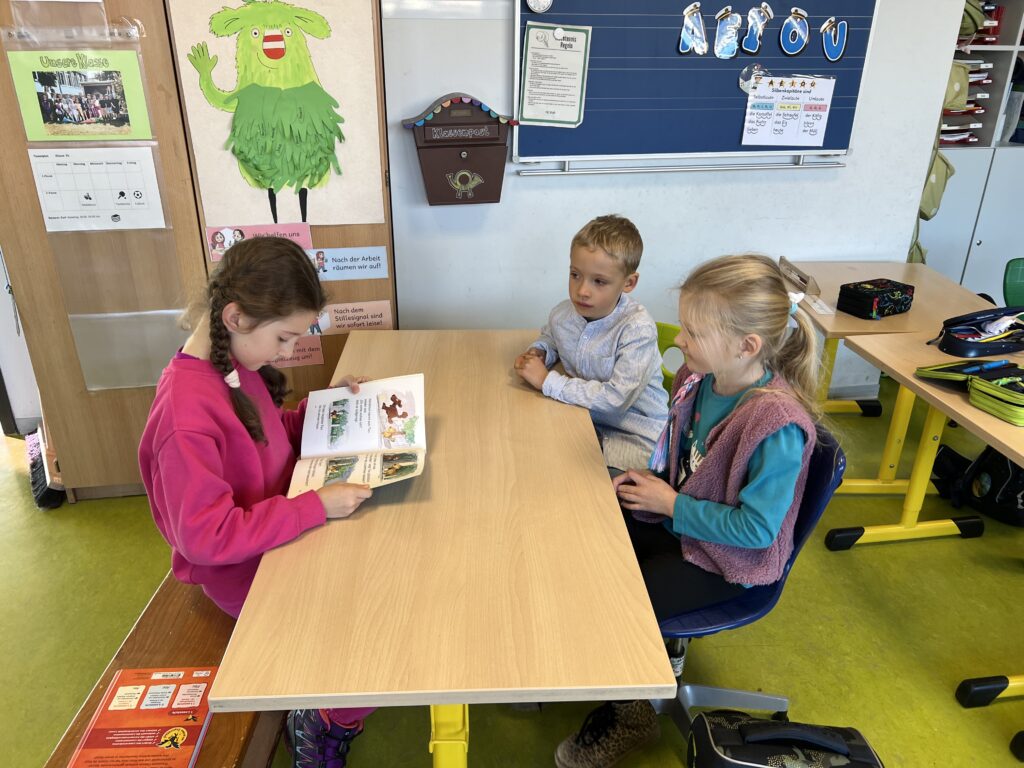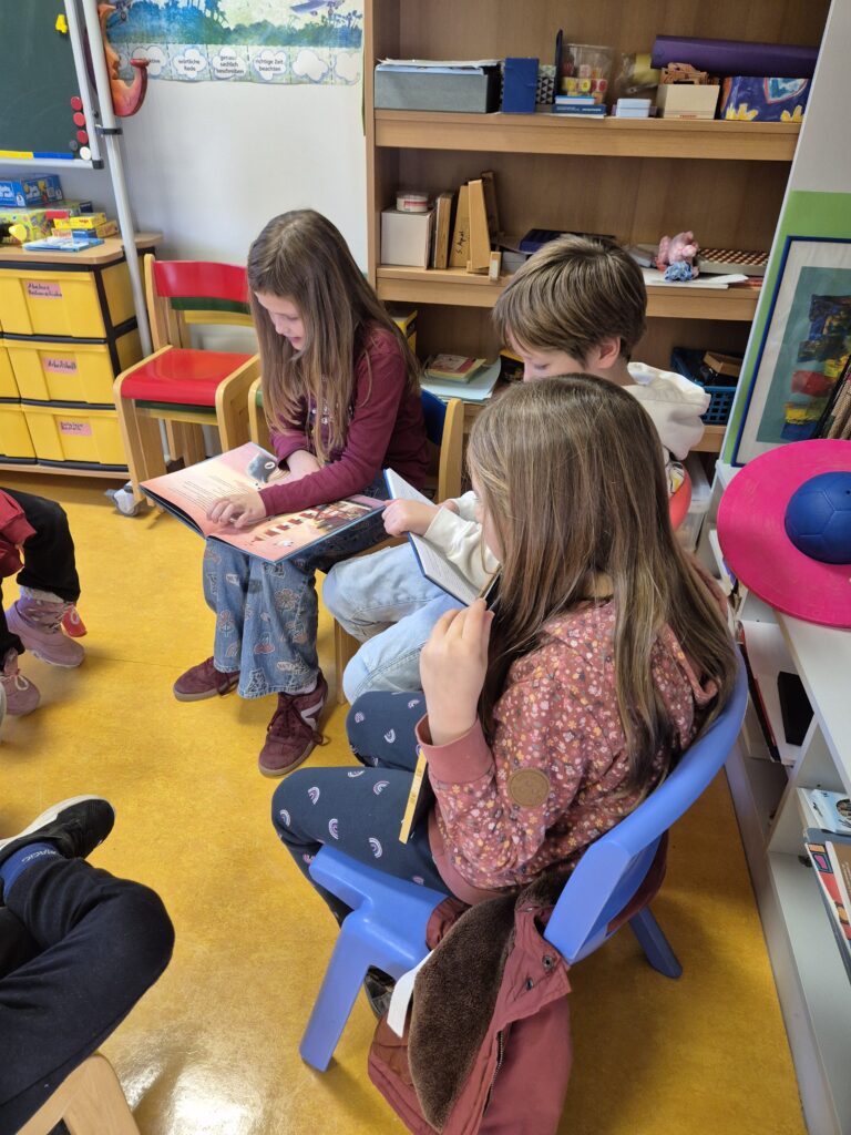 • Drittklässler hatten Kindergartenkinder zu Besuch und begeisterten die Kleinsten mit ihren Büchern und Geschichten.