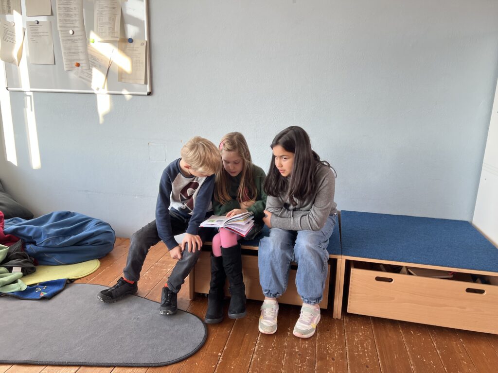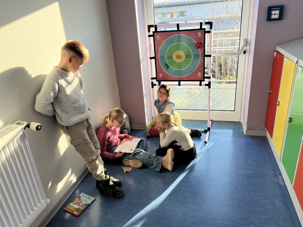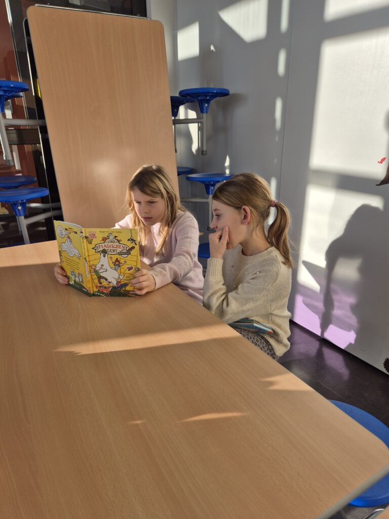 Der Tag begann gemeinsam in der Turnhalle: Bei der morgendlichen Frühgymnastik fanden sich alle Jahrgänge zusammen, wurden wach und starteten gut gelaunt in das Programm. Danach gingen die Schülerinnen und Schüler in die Story-Telling-Projekte, für die sie sich im Vorfeld eingewählt hatten. In diesen Angeboten wurden gezielt Bücher in anderen Sprachen oder aus anderen Ländern vorgelesen — so entstanden kleine Lesewelten mit einer Vielfalt an Stimmen, Kulturen und Erzähltraditionen.