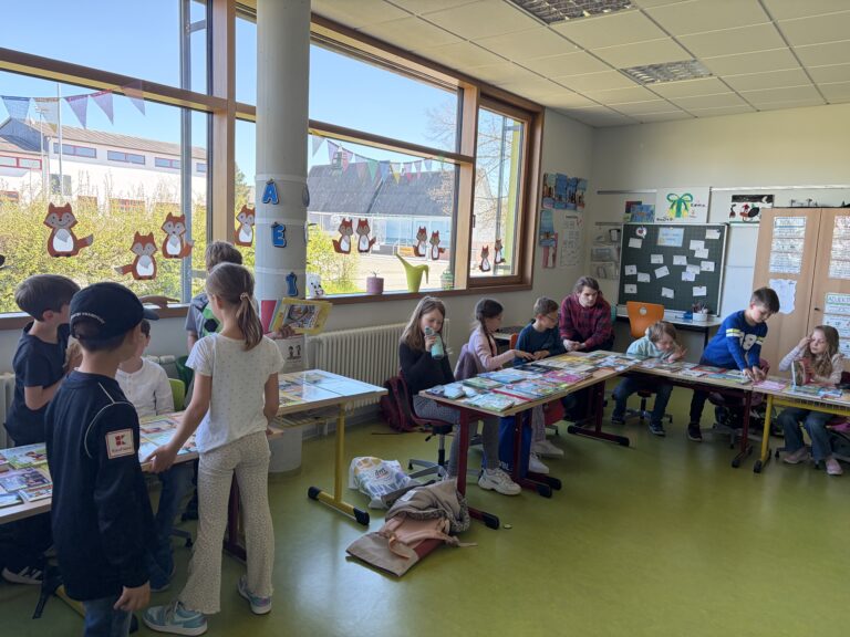 Ein weiterer Höhepunkt und ein toller Tagesabschluss war unser klassenübergreifender Bücherflohmarkt, der im ganzen Schulgebäude stattfand. Überall wurde gestöbert, entdeckt, verkauft, gekauft und getauscht – ein lebendiges Miteinander ganz im Zeichen des Lesens.